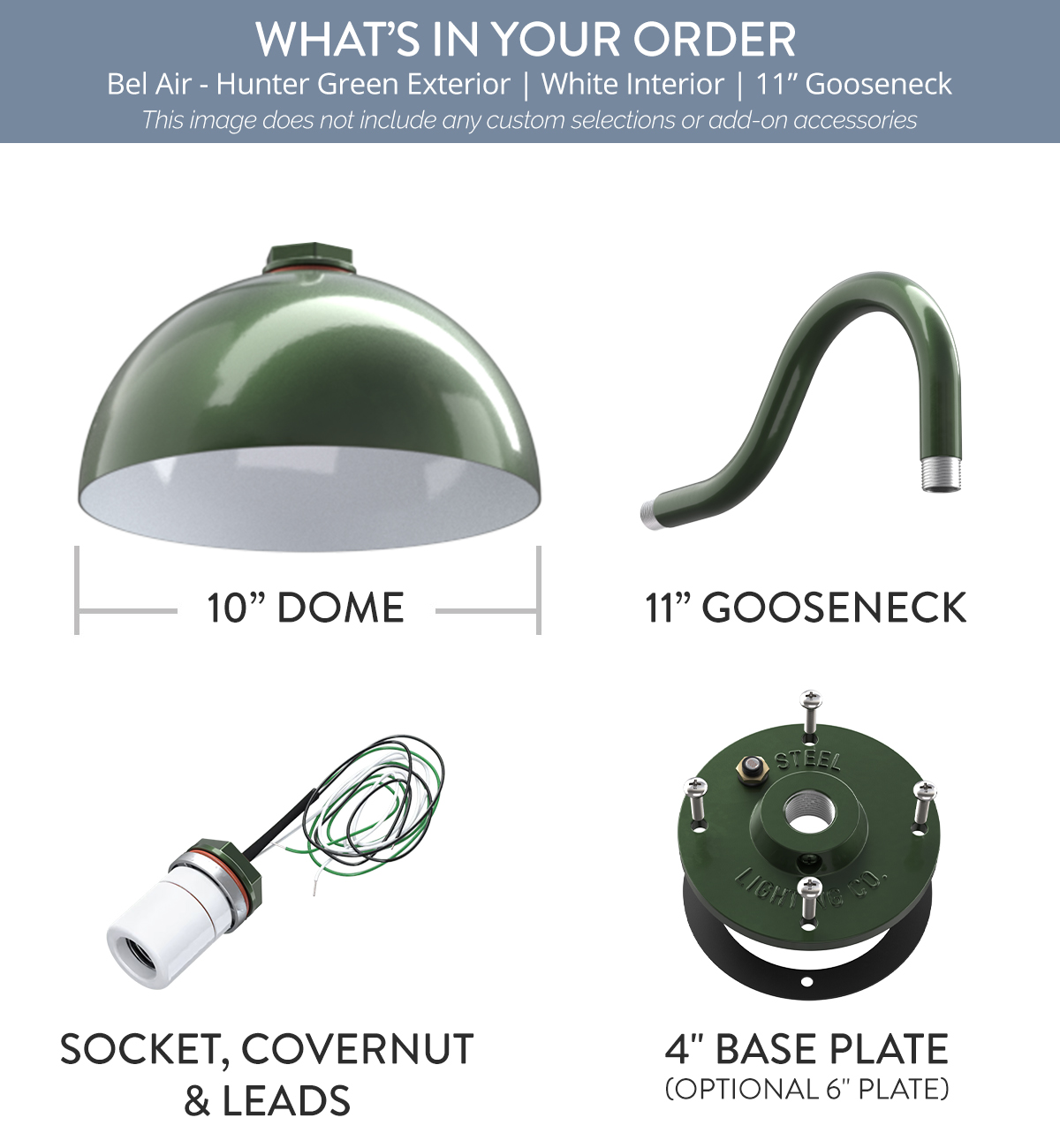 Bel Air x (1) Color: Hunter Green Interior Color: White Mount: 11" Gooseneck
