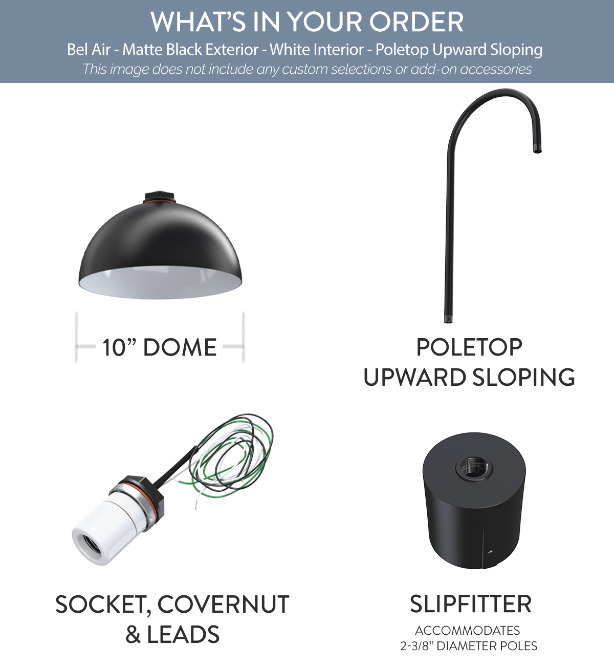 The Bel Air is a versatile bowl light fixture that combines modern elegance with farmhouse charm, making it a tasteful addition to both indoor and outdoor spaces. Designed with a 10-inch dome, this round light fixture serves as the perfect accent piece for entryways or as a pair of small wall lights over bathroom vanities. Its clean lines and sleek form create a sophisticated ambiance while providing ample illumination. Handcrafted from high-quality, 18-gauge American steel, the Bel Air is powder-coated for superior rust protection, ensuring durability in a wide range of environments. This modern farmhouse light effortlessly balances style and practicality, fitting into various design schemes while withstanding harsh conditions.