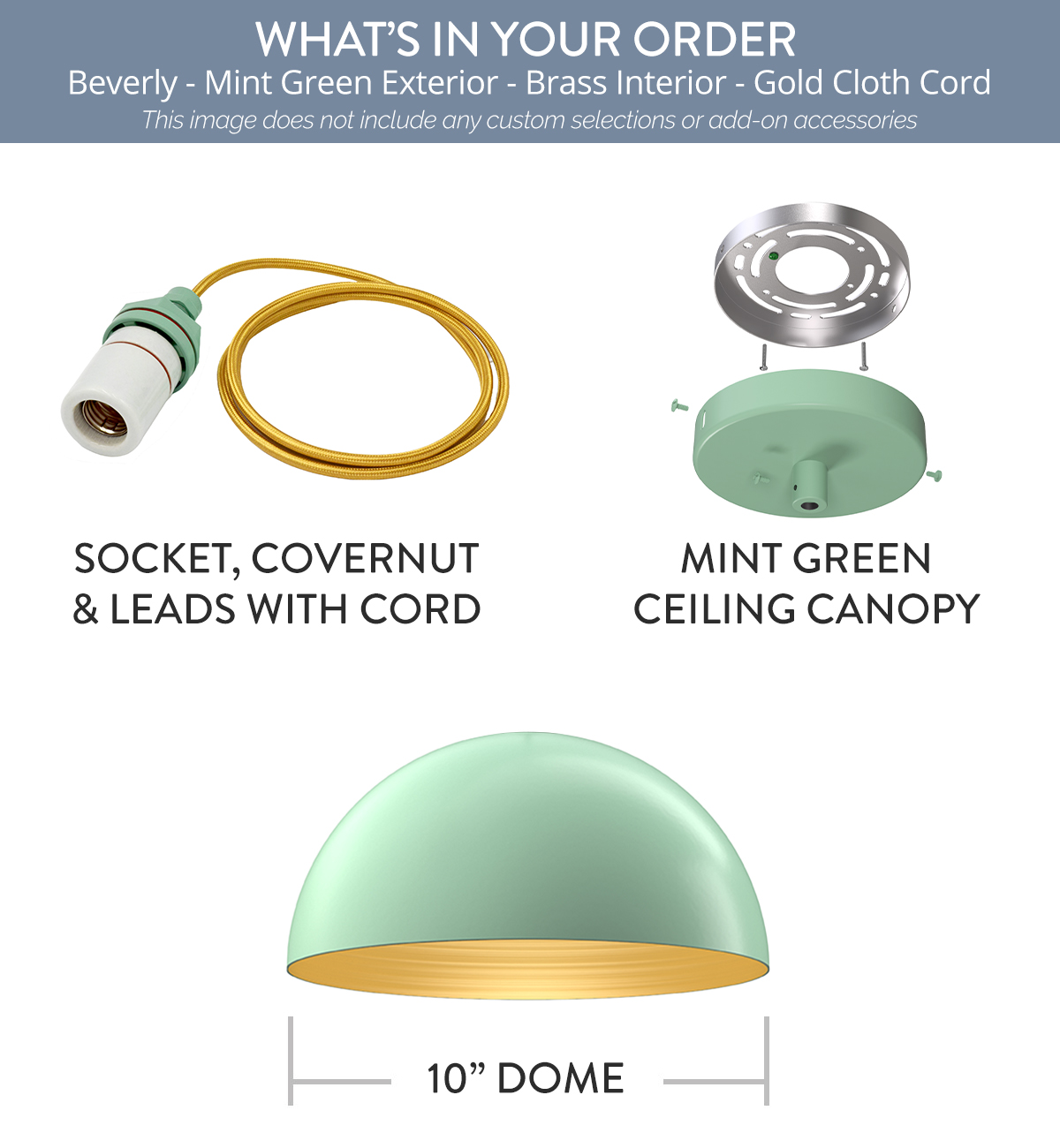 Beverly x (1) Color: Mint Green Interior Color: Brass Mount: 4 ft Gold Cloth Cord