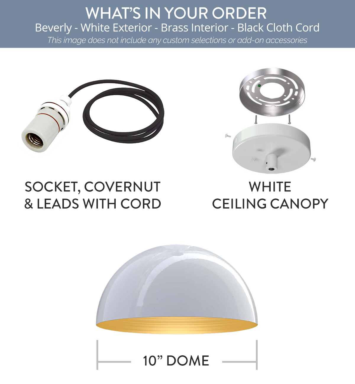 Beverly x (1) Color: White Interior Color: Brass Mount: 4-ft-Black-Cloth-Cord