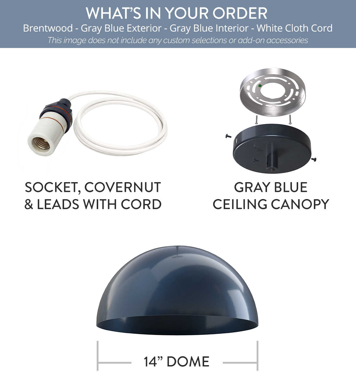 Brentwood x (1) Color: Gray Blue Interior Color: Gray Blue Mount: 4 ft White Cloth Cord