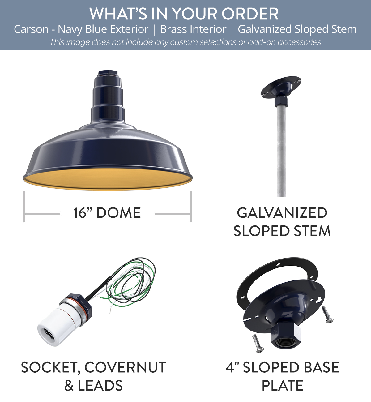 Carson x (1) Color: Navy Blue Interior Color: Brass Mount: 12" Sloped Stem