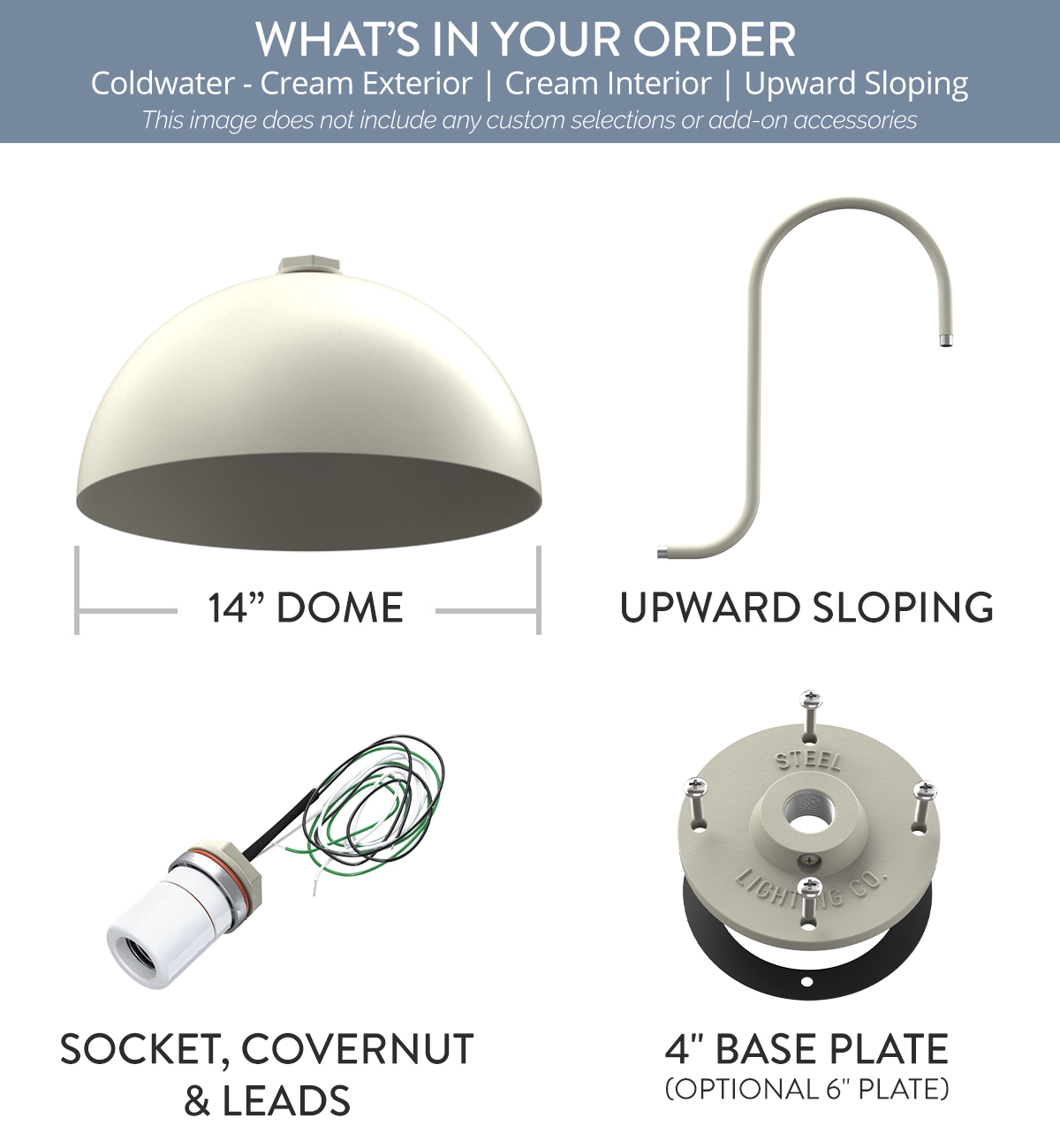 The Coldwater offers a modern twist on the classic light fixture, designed to bring timeless appeal to a variety of spaces. With its 14-inch dome, this modern bowl light creates a bold yet refined presence, making it the perfect accent for entryway lighting, or positioned above vanities or kitchen sinks. Its sleek design enhances any setting, providing both elegance and functional lighting. Handcrafted from 18-gauge American steel, the Coldwater’s powder-coated finish ensures superior rust protection, making it durable enough for both indoor and outdoor use. The fixture’s versatility and contemporary style allow it to fit seamlessly into modern homes while retaining the classic look of a traditional bowl light.