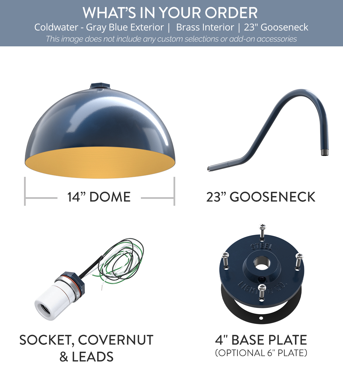 The Coldwater offers a modern twist on the classic light fixture, designed to bring timeless appeal to a variety of spaces. With its 14-inch dome, this modern bowl light creates a bold yet refined presence, making it the perfect accent for entryway lighting, or positioned above vanities or kitchen sinks. Its sleek design enhances any setting, providing both elegance and functional lighting. Handcrafted from 18-gauge American steel, the Coldwater’s powder-coated finish ensures superior rust protection, making it durable enough for both indoor and outdoor use. The fixture’s versatility and contemporary style allow it to fit seamlessly into modern homes while retaining the classic look of a traditional bowl light.
