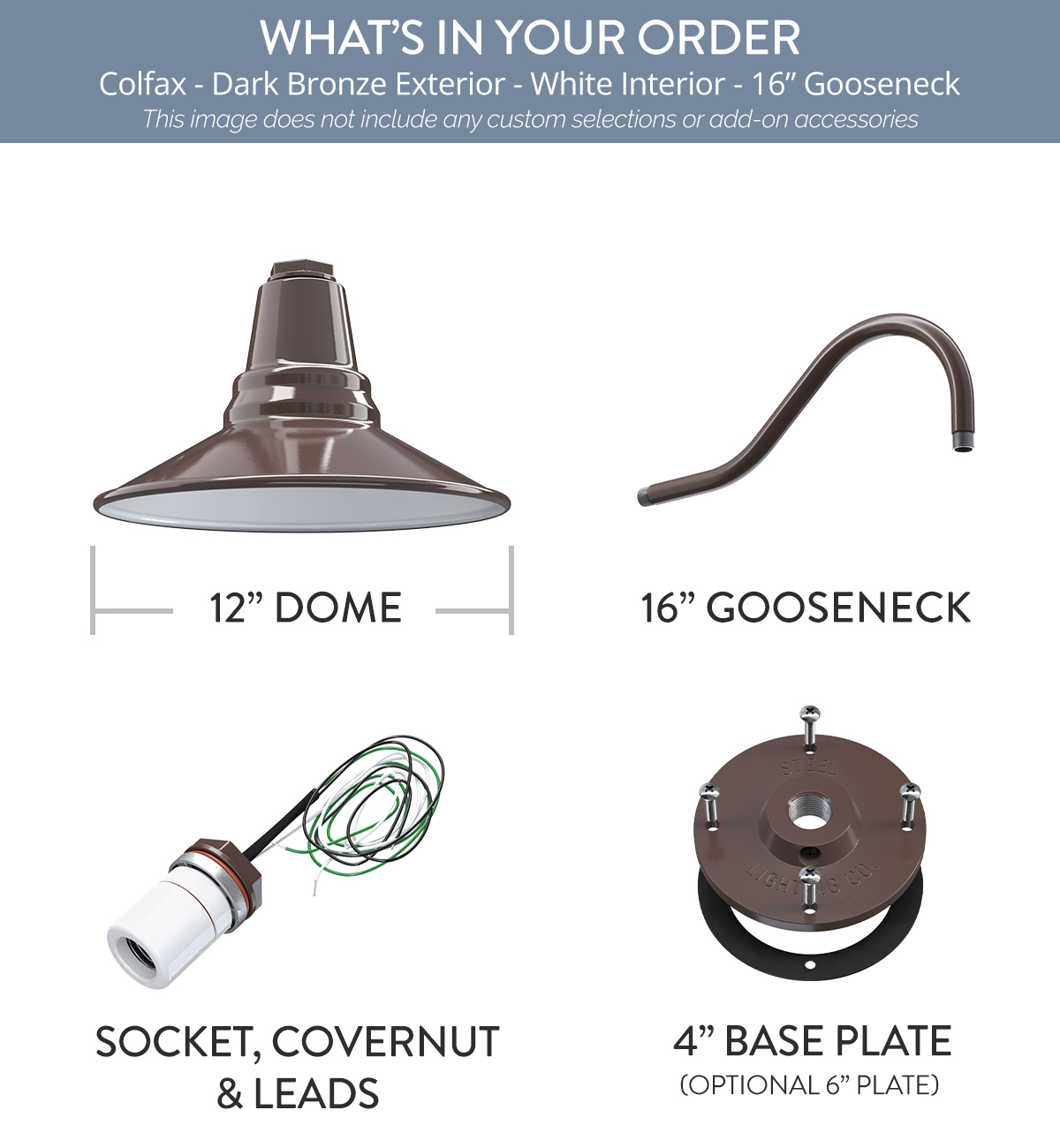 Colfax x (1) Color: Dark Bronze Interior Color: White Mount: 16" Gooseneck