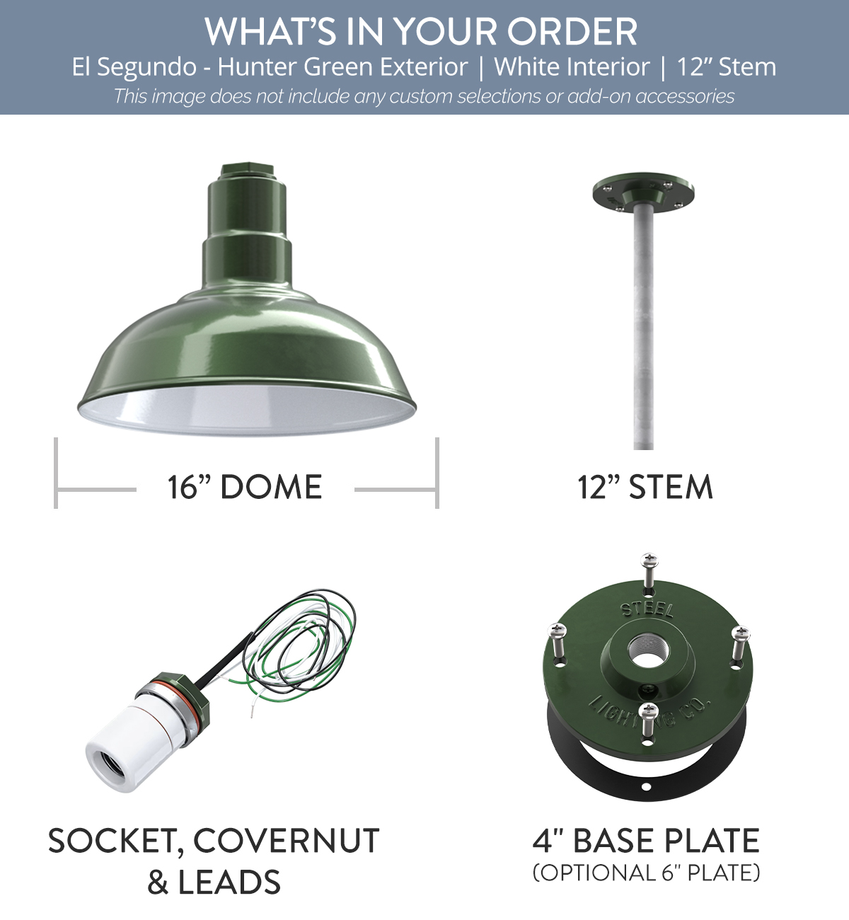 El Segundo x (1) Color: Hunter Green Interior Color: White Mount: 12" Galvanized Stem