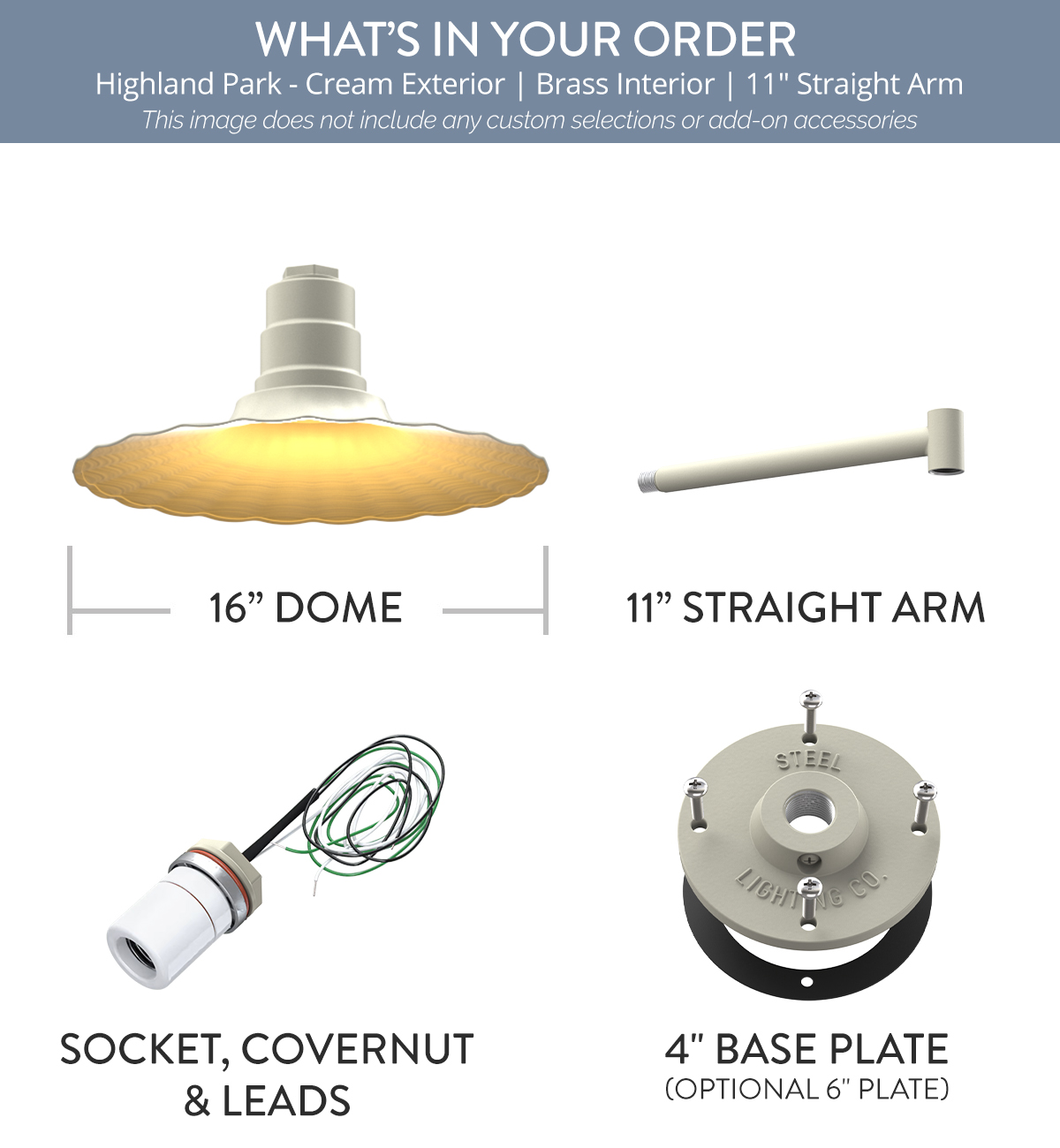 Highland Park x (1) Color: Cream Interior Color: Brass Mount: 11" Straight Arm