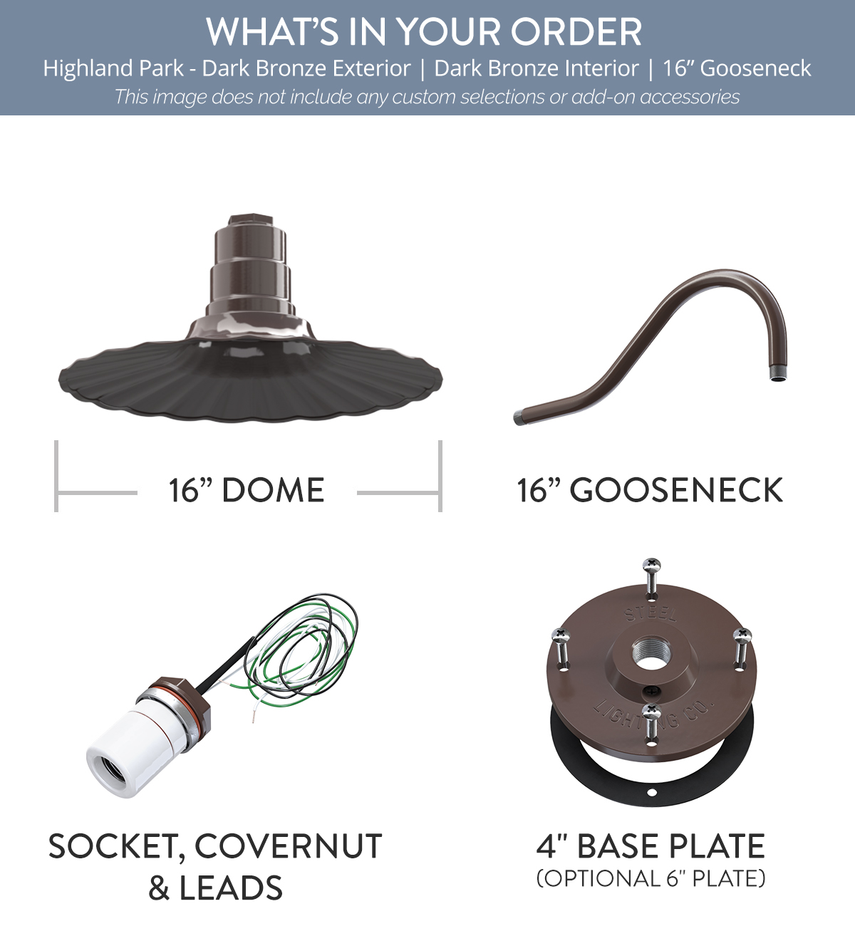 Highland Park x (1) Color: Dark Bronze Interior Color: Dark Bronze Mount: 16" Gooseneck