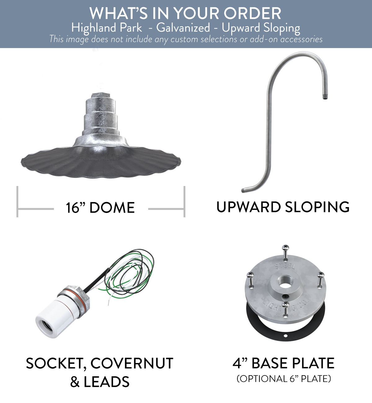 Highland Park x (1) Color: Galvanized Interior Color: Galvanized Mount: Upward Sloping