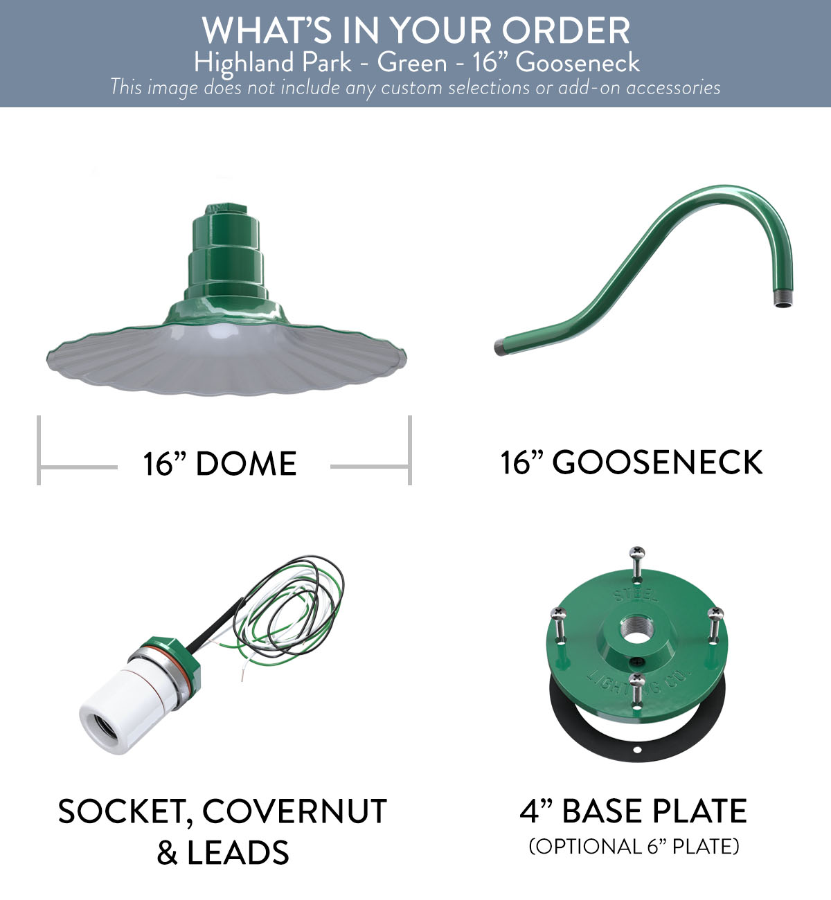 This funky favorite adds a little extra texture and mid-century flair to your space while maintaining its barn house roots. The Highland Park throws major retro light fixture vibes, and is the perfect shape for any spot you choose to add a little pizzazz. This sturdy fixture comes standard with a 16” dome and its medium size and unique details can be used in a million different ways however you see fit. Simply pick between 11” straight arm, 16” gooseneck, or 23” gooseneck, then order, install, and feel at home under Steel Lighting. When you’re crafting a space to bring your story to light, this retro light fixture can stand out on its own, or quietly pull everything together in style. As with every light we craft, The Highland Park is handmade from heavy-duty steel, then powder coated for the high-quality, long-lasting finish we all know and love. Creating a space full of quality and character is easy with help from The Highland Park, which is most often used outdoors and looks great on large exterior walls (like on a garage), on barn sides, or overlooking porches and patios. Want to install it indoors? Be our guest! Our lights are all approved for indoor and outdoor use.