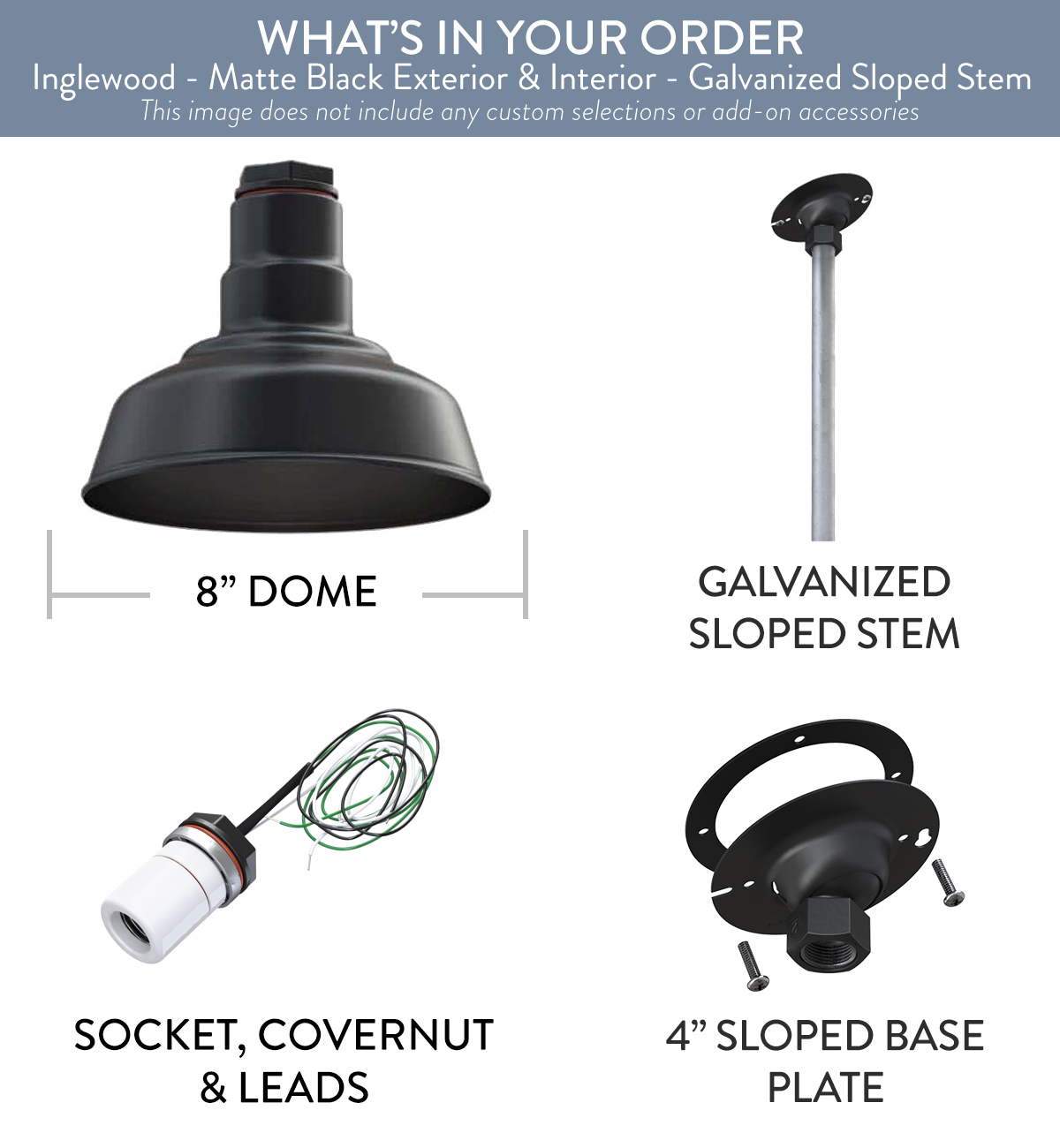 Inglewood x (1) Color: Matte Black Interior Color: Matte Black Mount: 12" Sloped Stem