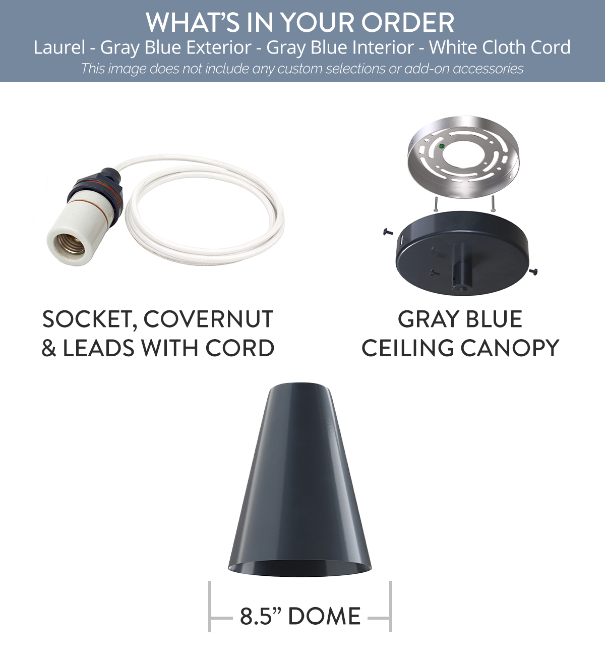 Laurel x (1) Color: Gray Blue Interior Color: Gray Blue Mount: 4 ft White Cloth Cord