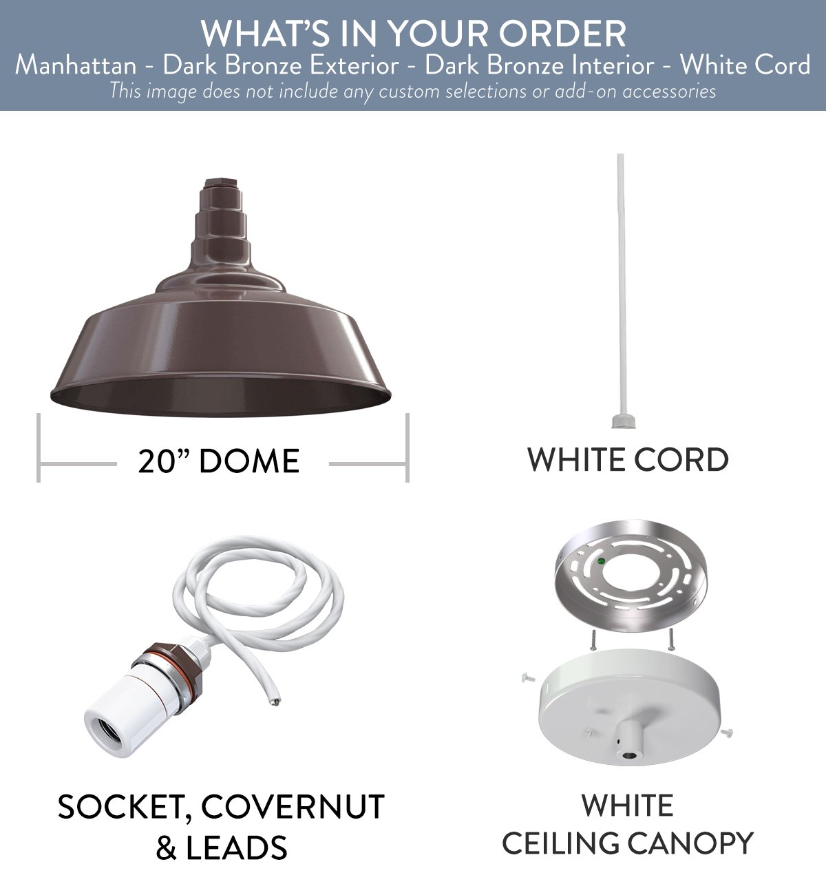 The Manhattan, our 20" dome, is great for illuminating spacious rooms, store aisles and warehouses. It is our largest industrial pendant light that has a big presence that can make an even bigger statement when added to your story!