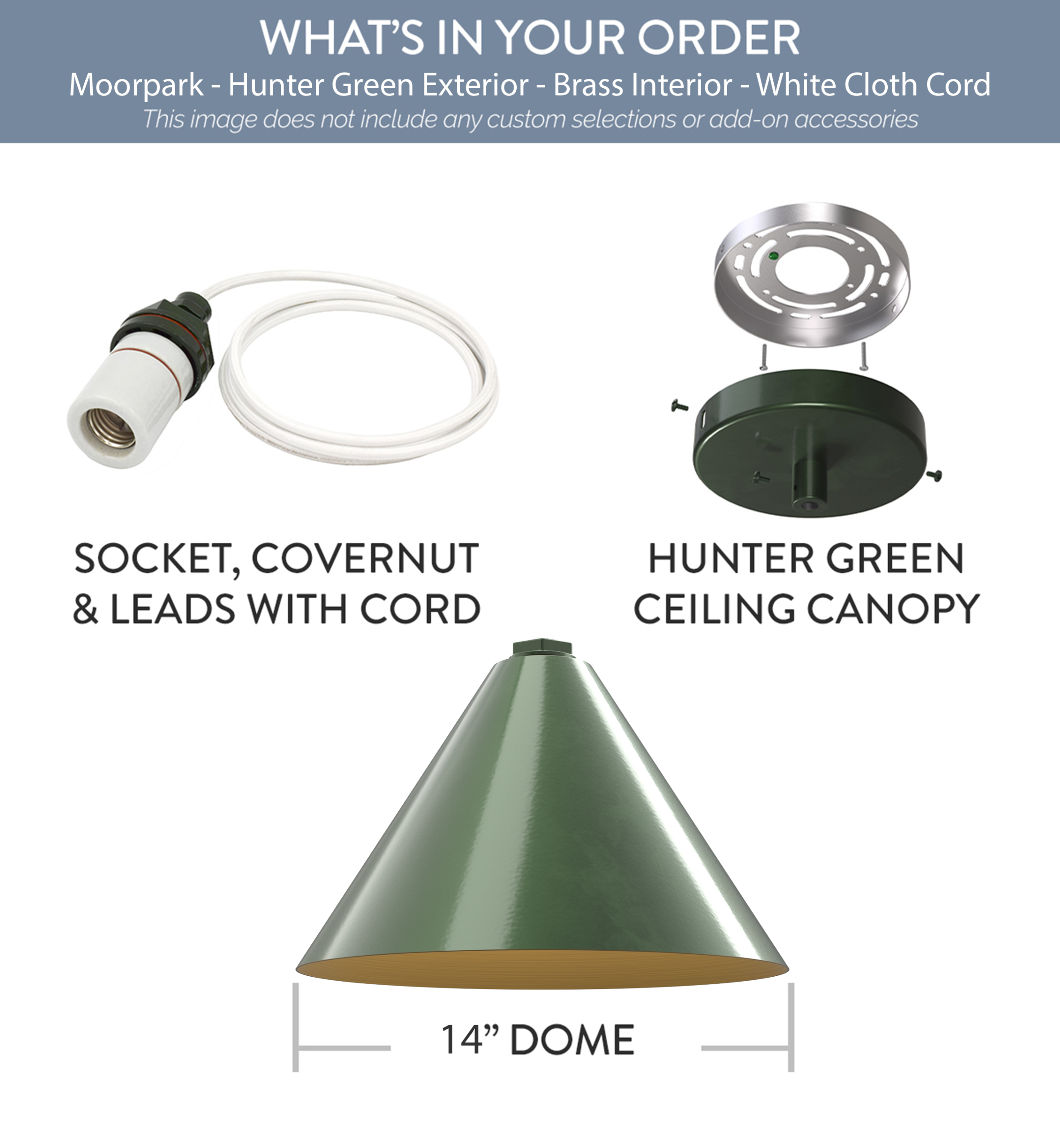 Moorpark x (1) Color: Hunter Green Interior Color: Brass Mount: 4 ft White Cloth Cord