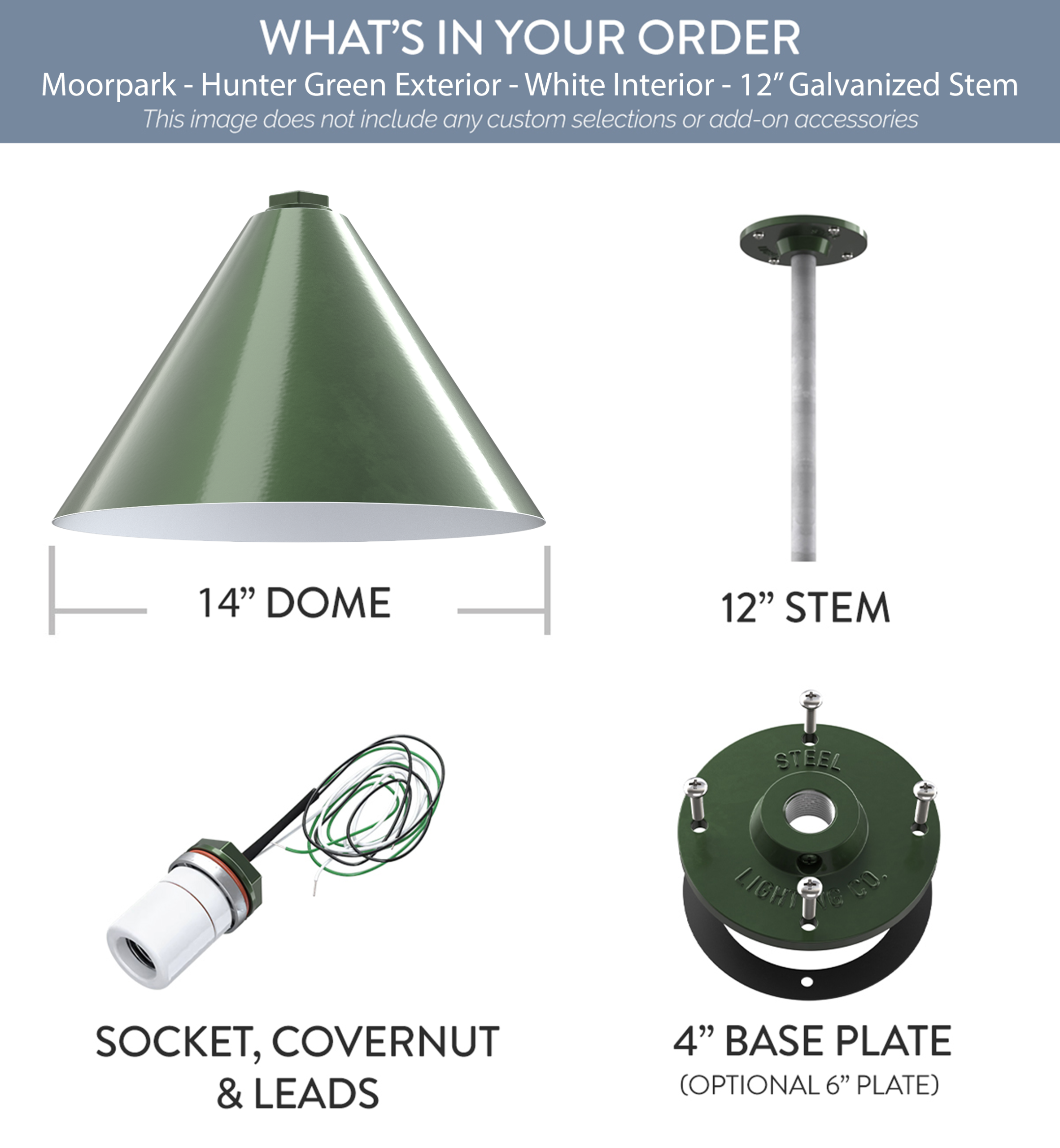 Moorpark x (1) Color: Hunter Green Interior Color: White Mount: 12" Galvanized Stem