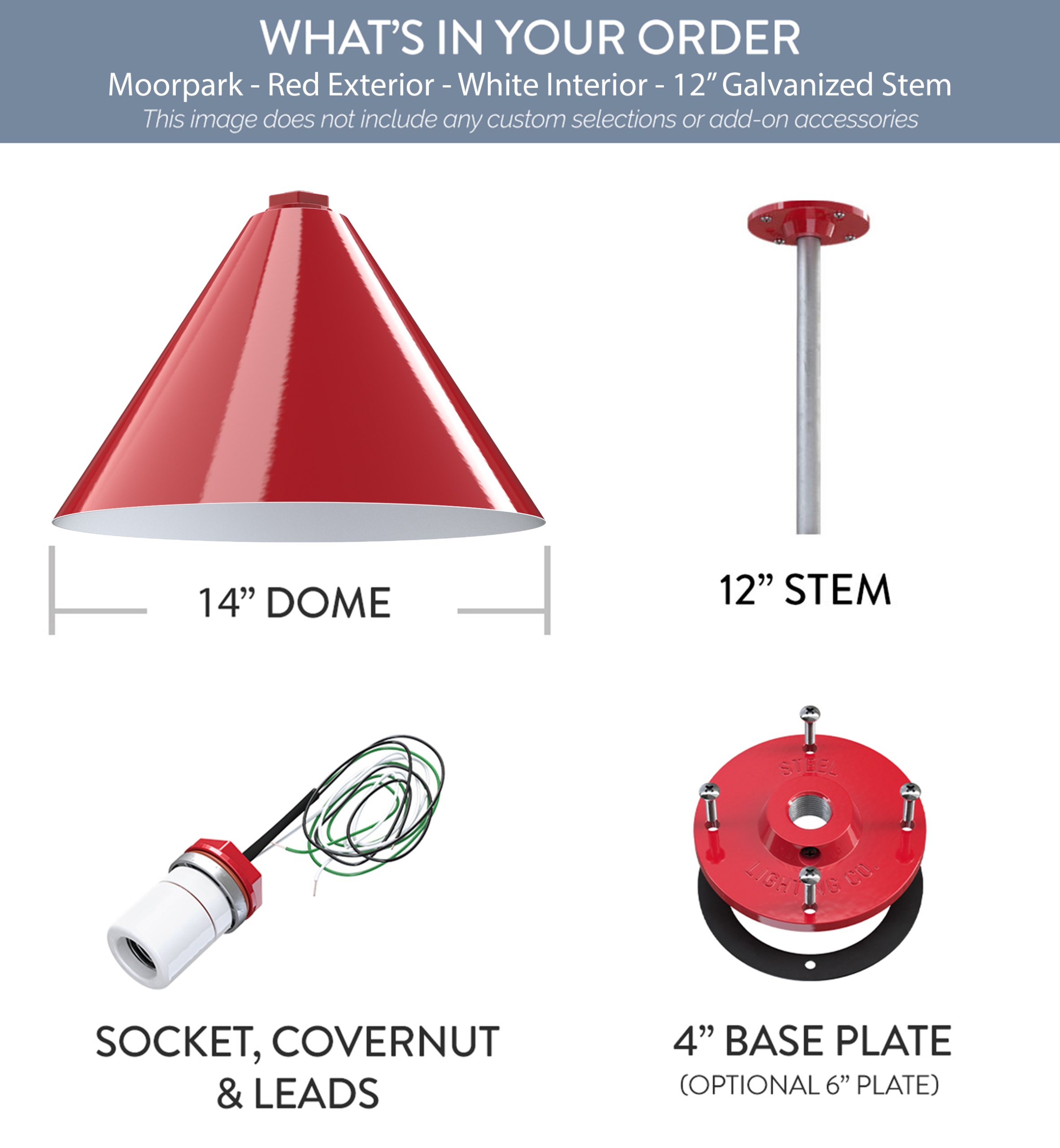 Moorpark x (1) Color: Red Interior Color: White Mount: 12" Galvanized Stem