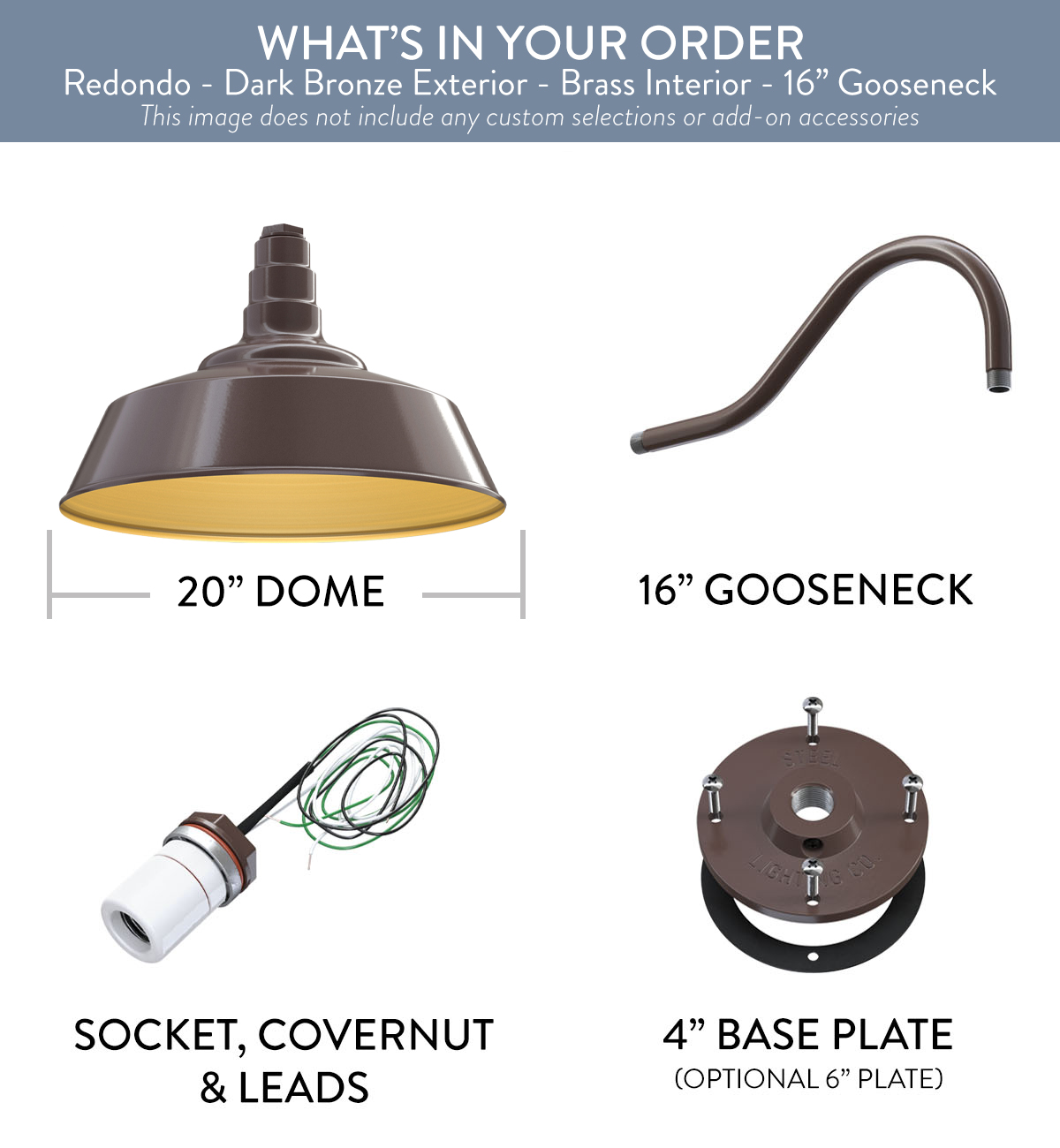Redondo x (1) Color: Dark Bronze Interior Color: Brass Mount: 16" Gooseneck