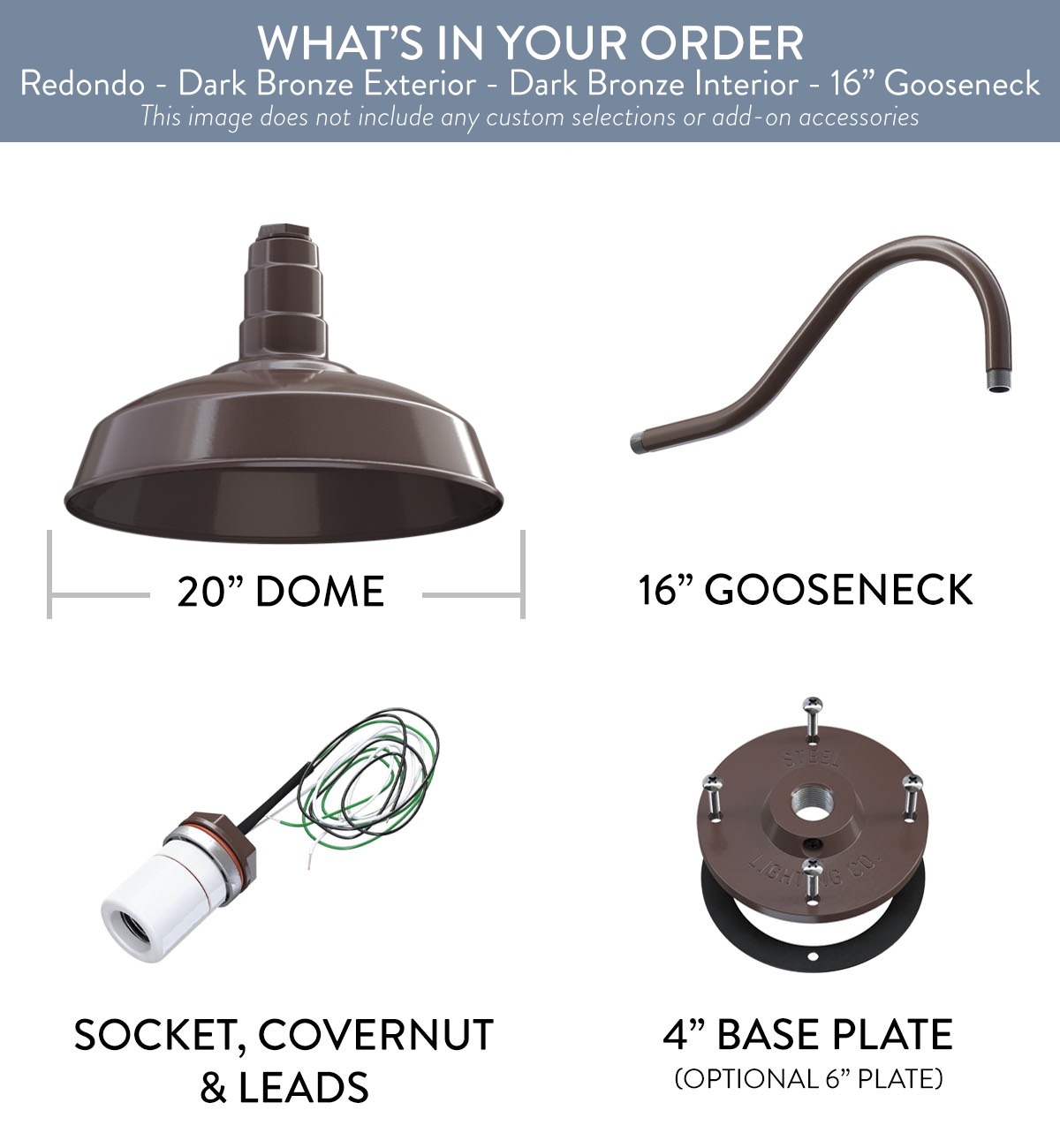 Redondo x (1) Color: Dark Bronze Interior Color: Dark Bronze Mount: 16" Gooseneck