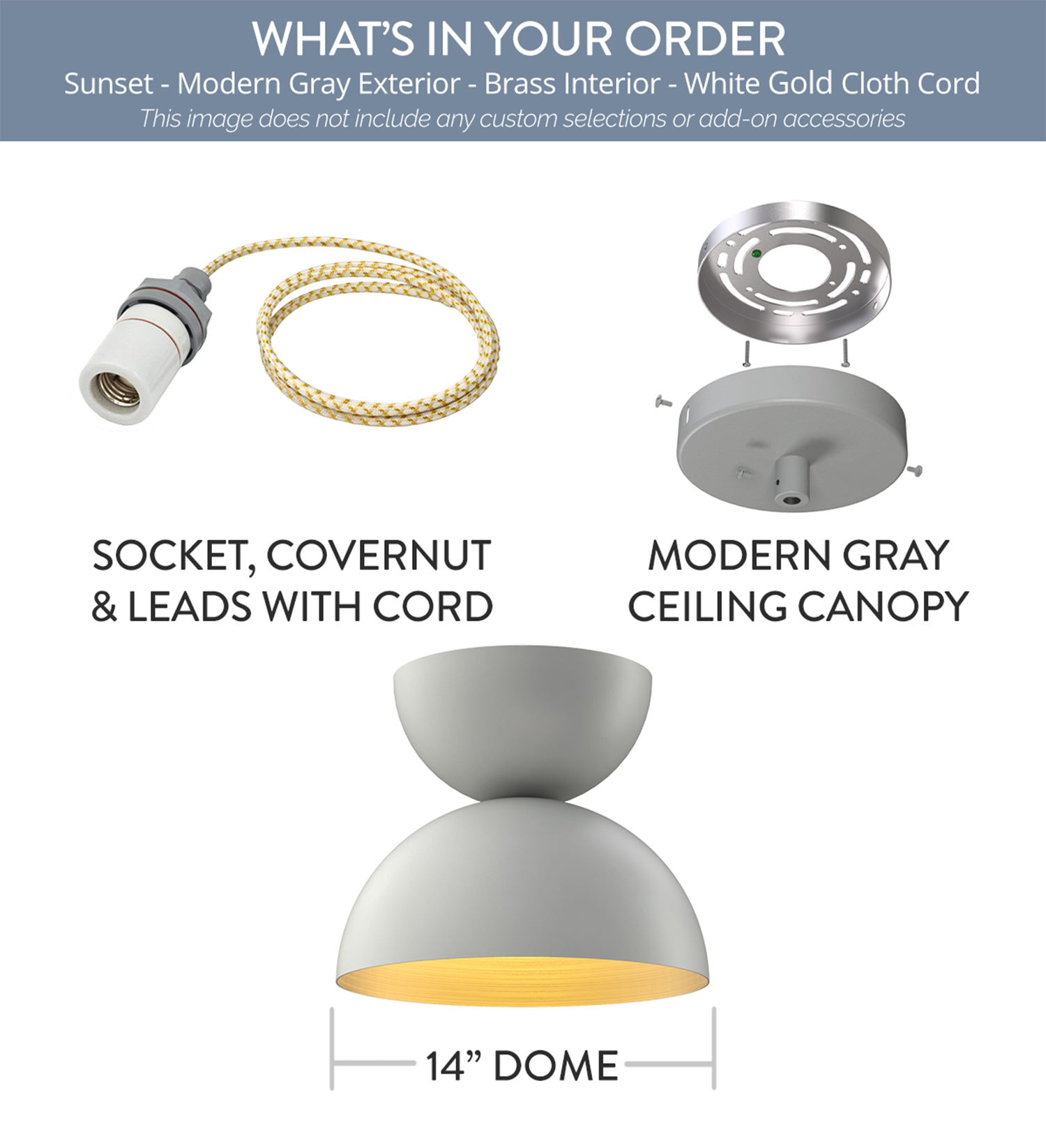 Sunset x (1) Color: Modern Gray Interior Color: Brass Mount: 4 ft White Gold Cloth Cord