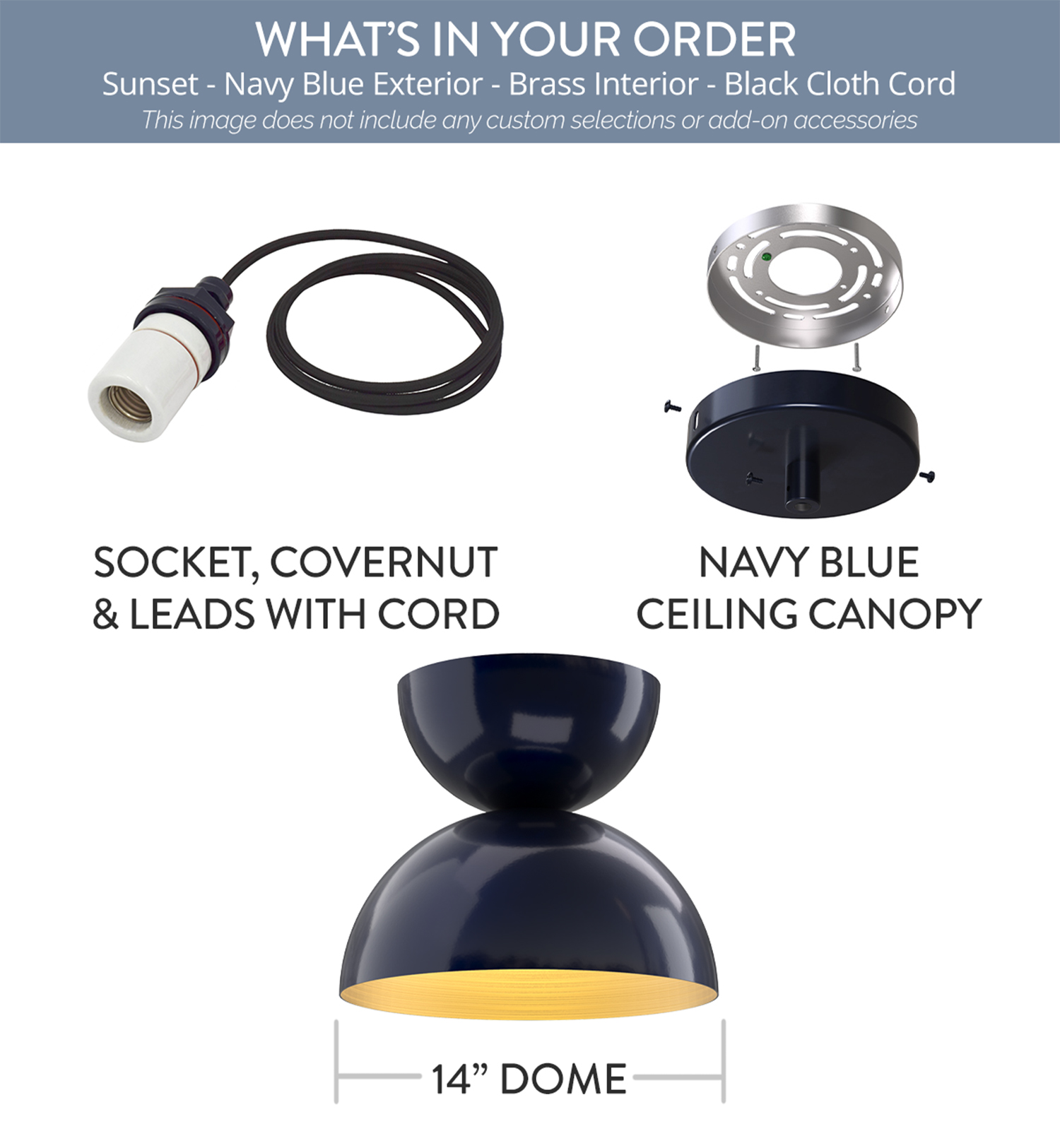 Sunset x (1) Color: Navy Blue Interior Color: Brass Mount: 4-ft-Black-Cloth-Cord