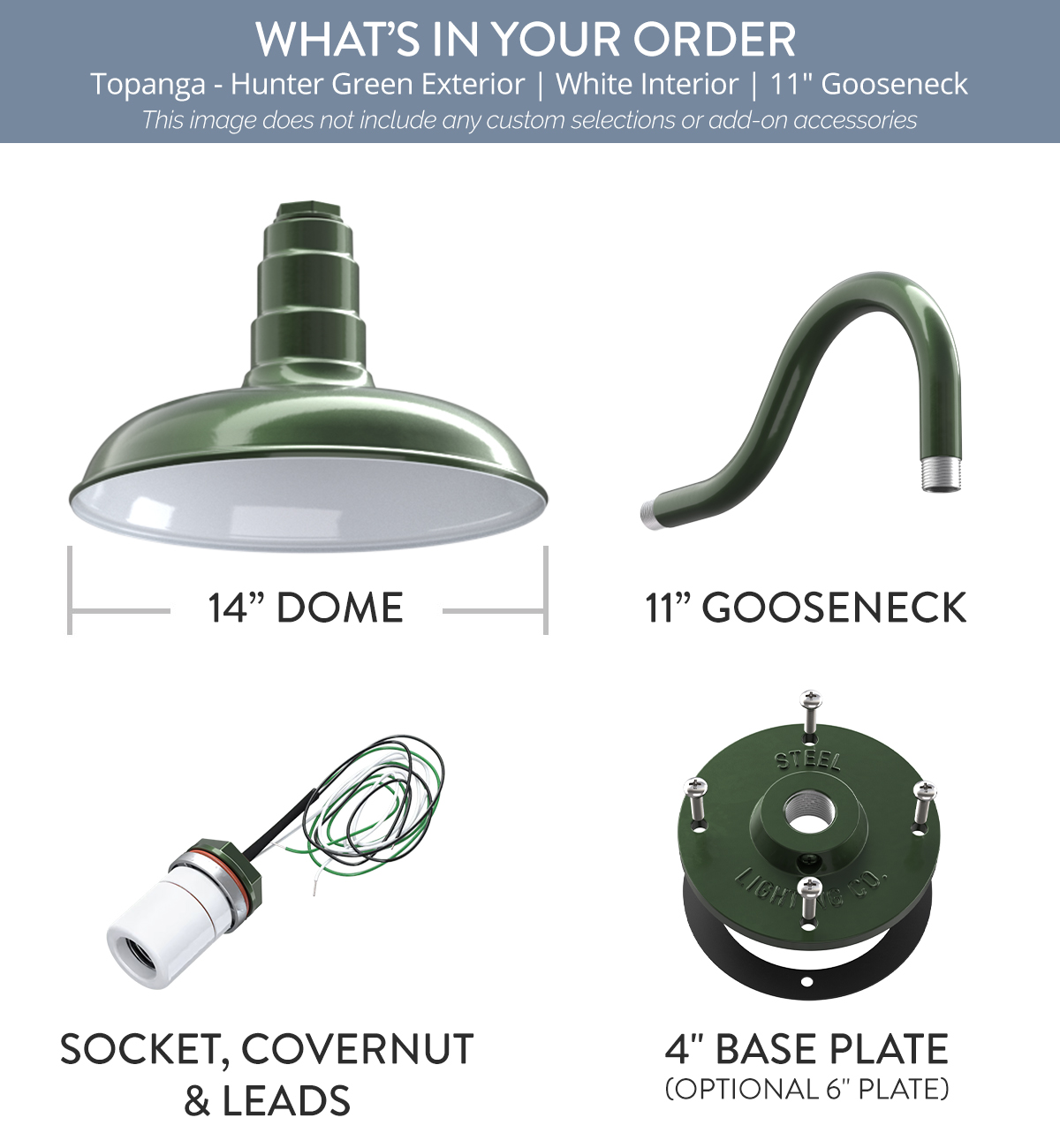 Topanga x (1) Color: Hunter Green Interior Color: White Mount: 11" Gooseneck