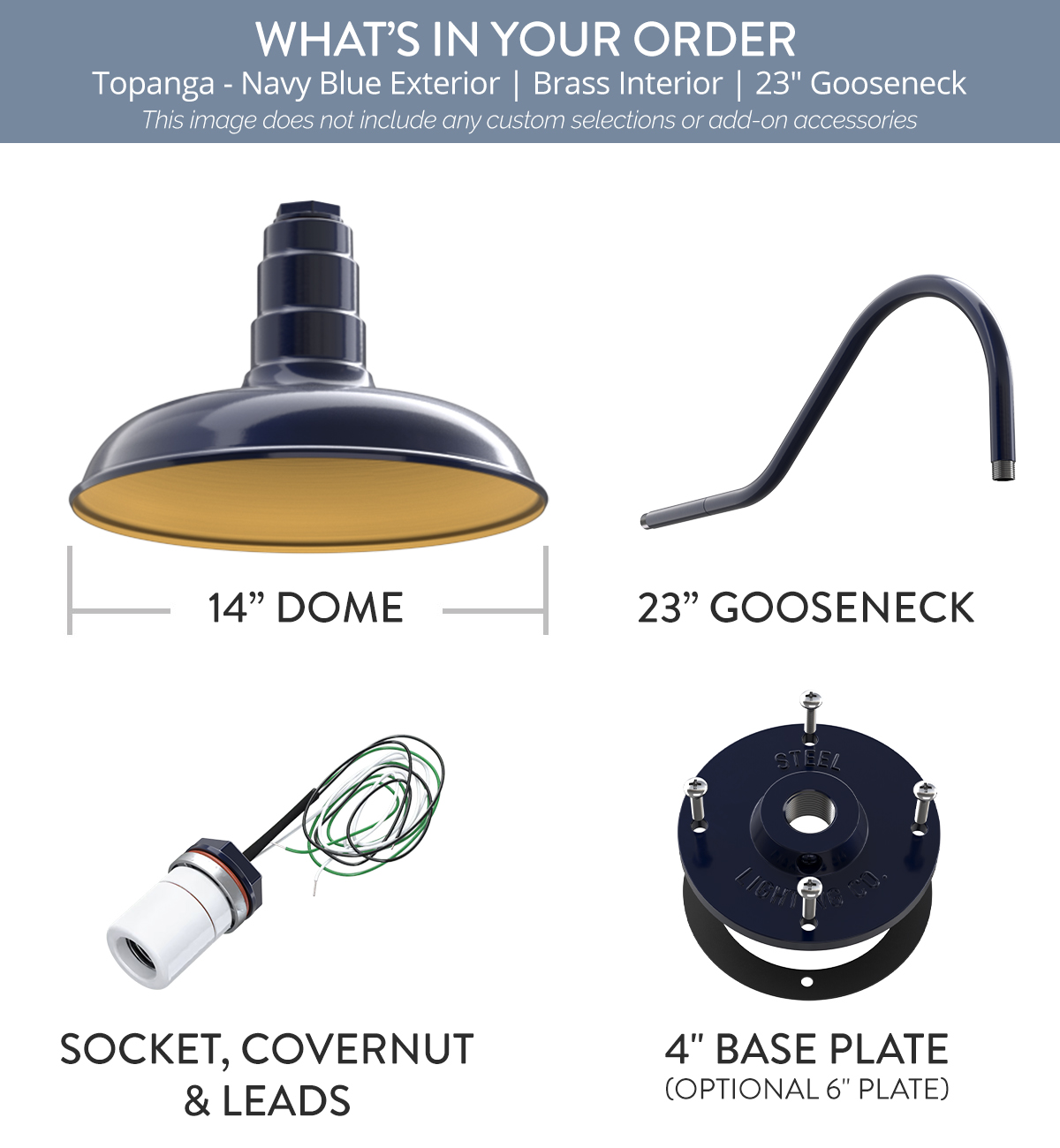 Topanga x (1) Color: Navy Blue Interior Color: Brass Mount: 23" Gooseneck