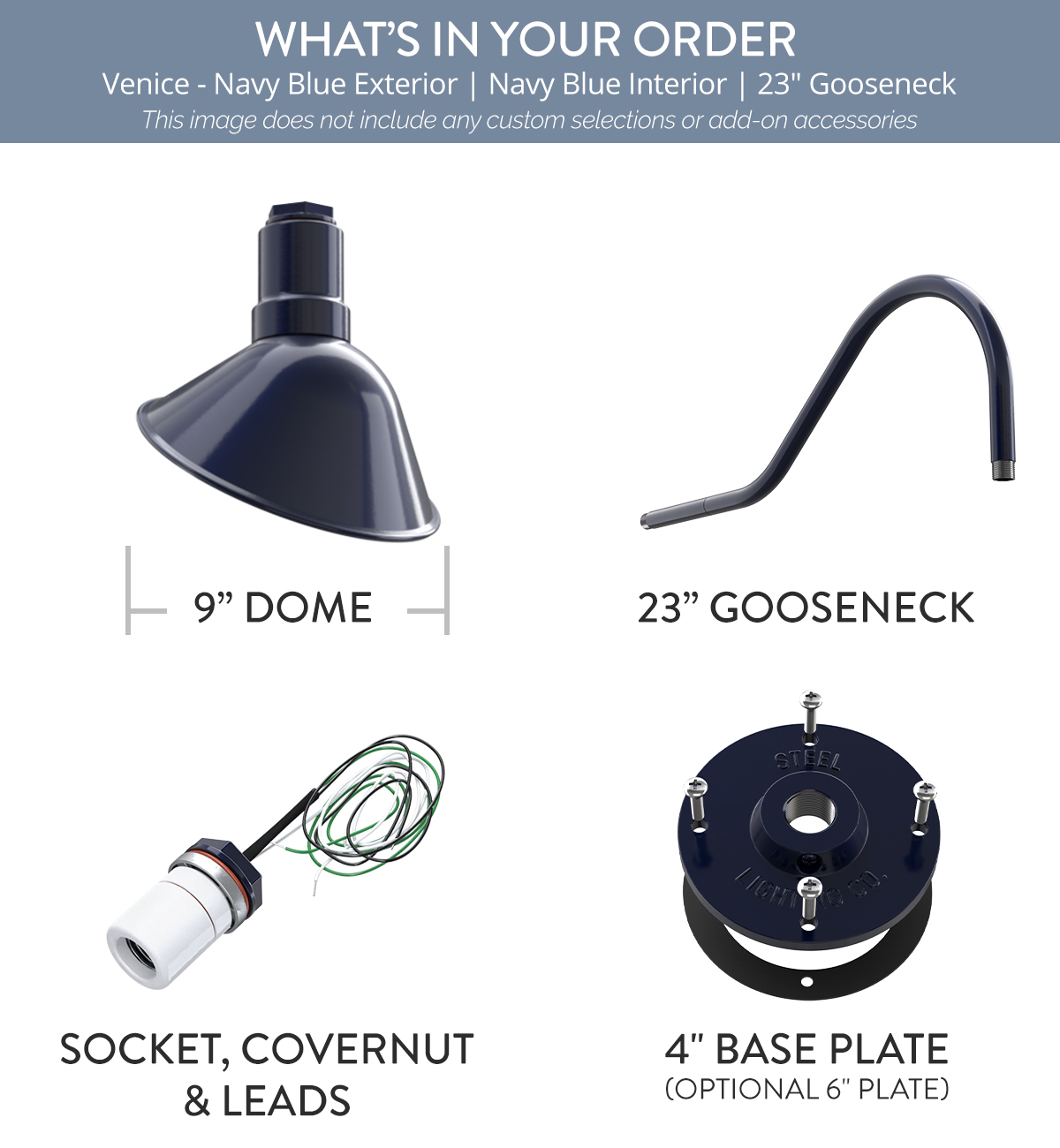 Venice x (1) Color: Navy Blue Interior Color: Navy Blue Mount: 23" Gooseneck