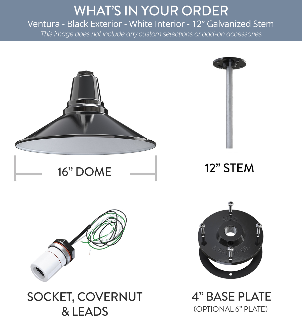 Comes standard with a 16" Dome
