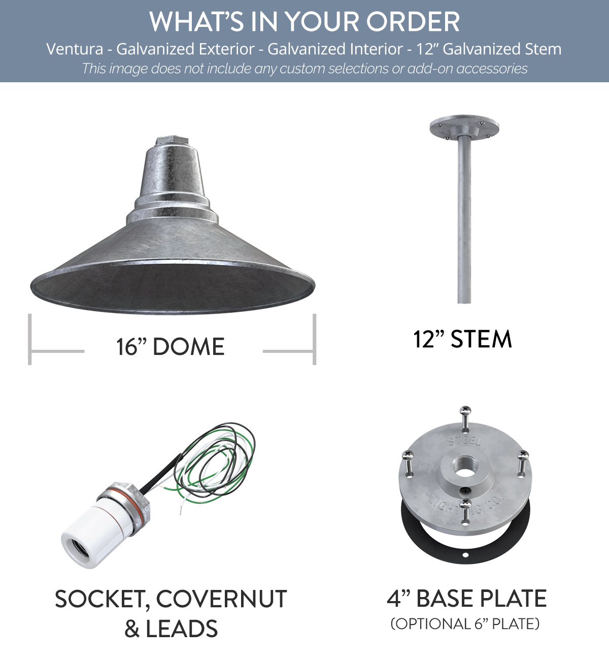 Comes standard with a 16" Dome