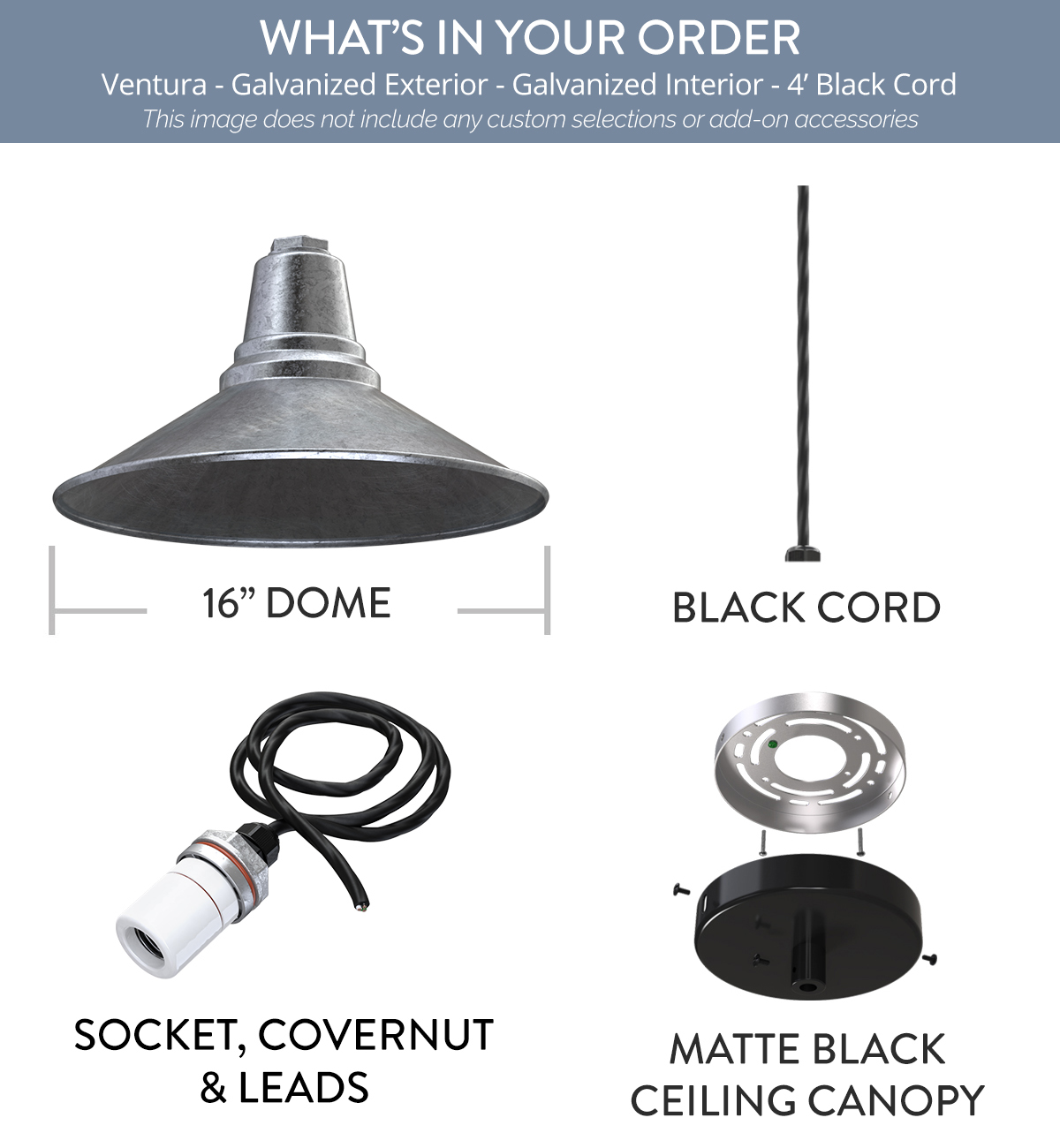 Comes standard with a 16" Dome
