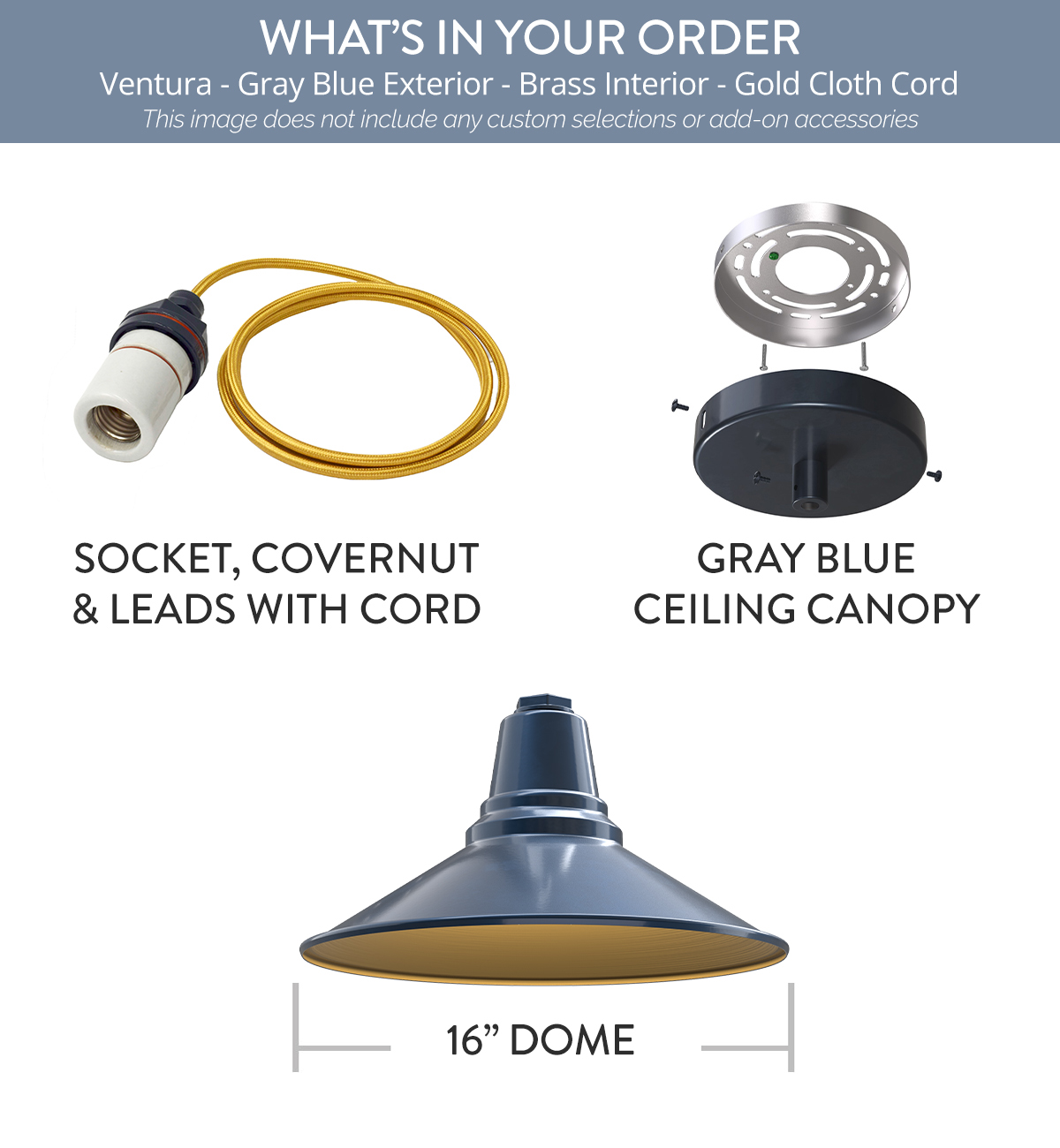 Ventura x (1) Color: Gray Blue Interior Color: Brass Mount: 4 ft Gold Cloth Cord