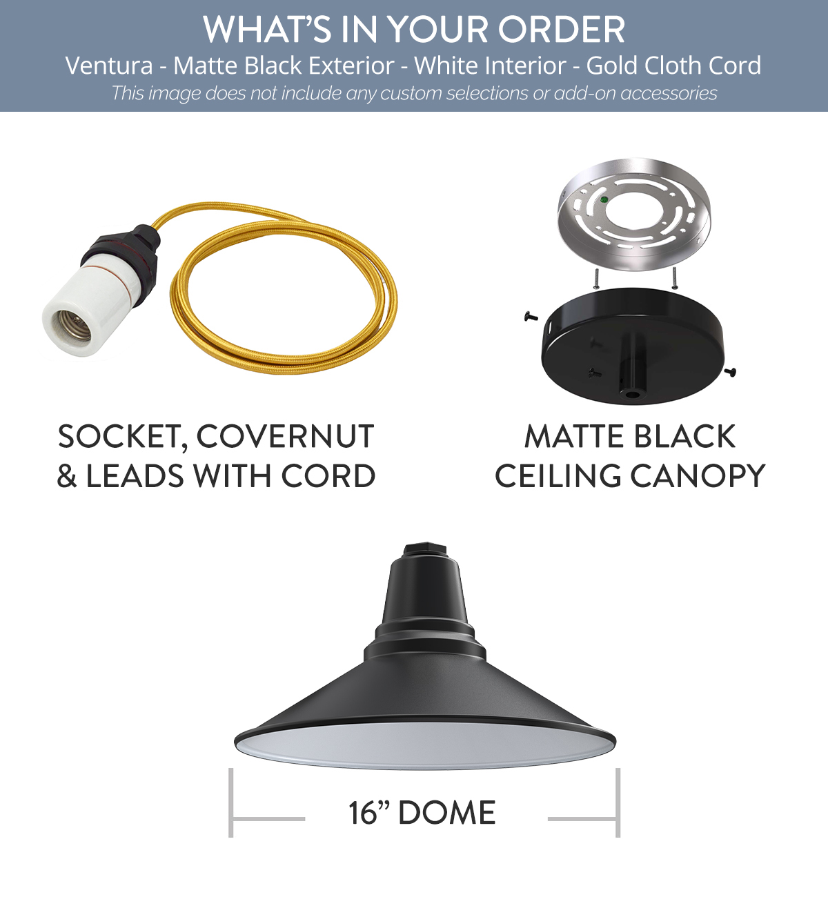 Comes standard with a 16" Dome