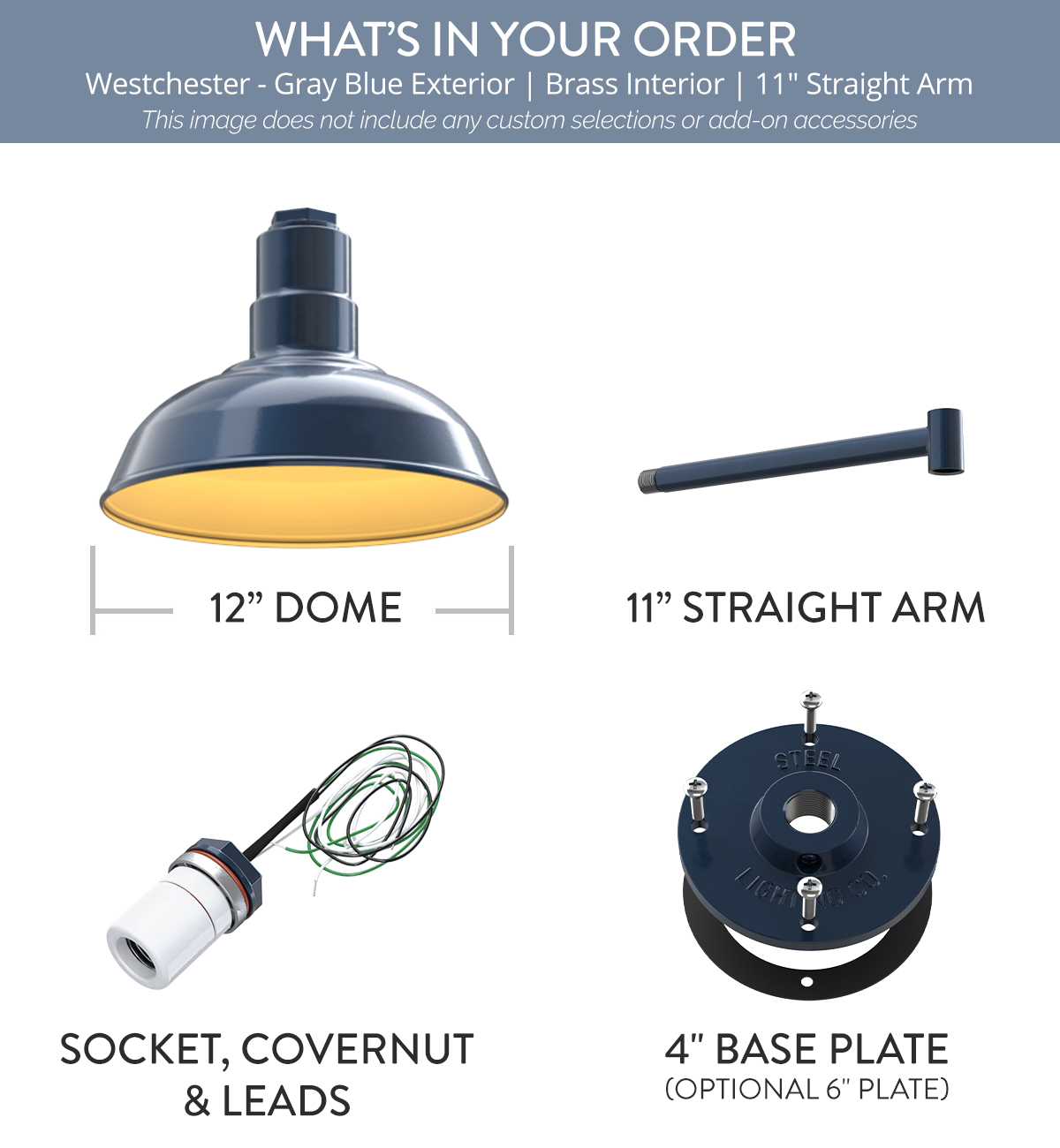 Westchester x (1) Color: Gray Blue Interior Color: Brass Mount: 11" Straight Arm