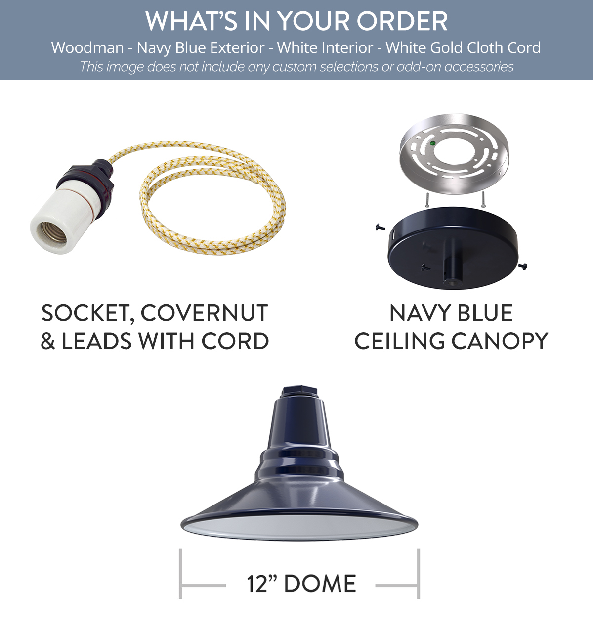 Woodman x (1) Color: Navy Blue Interior Color: White Mount: 4 ft White Gold Cloth Cord